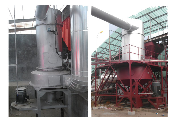 同加热系统加热的热介质混合后呈旋流状流态化运动,煅烧过程在瞬间完成后,进入气固分离器,分离后的固体与气体分别从排料口和排风口排出。